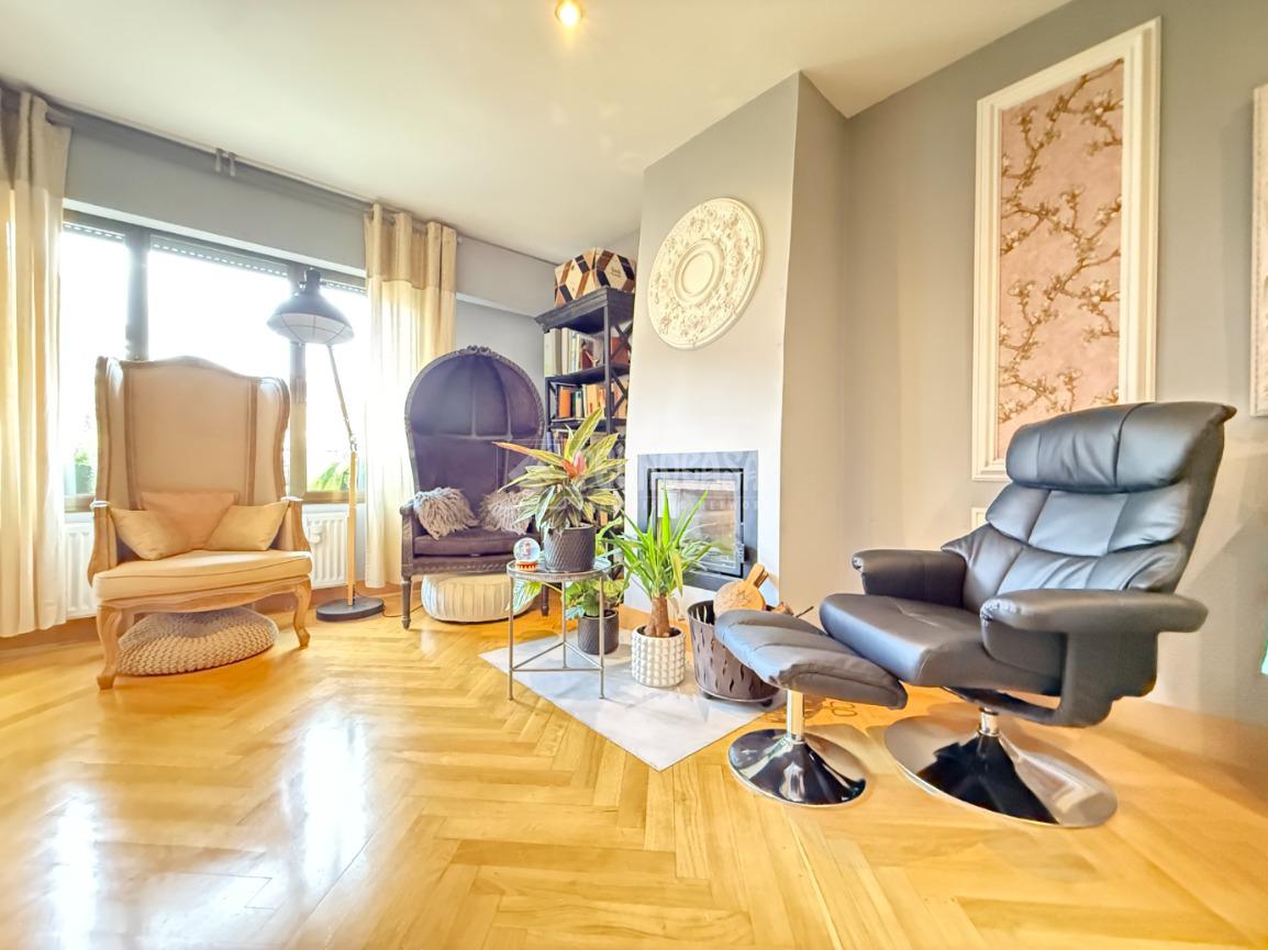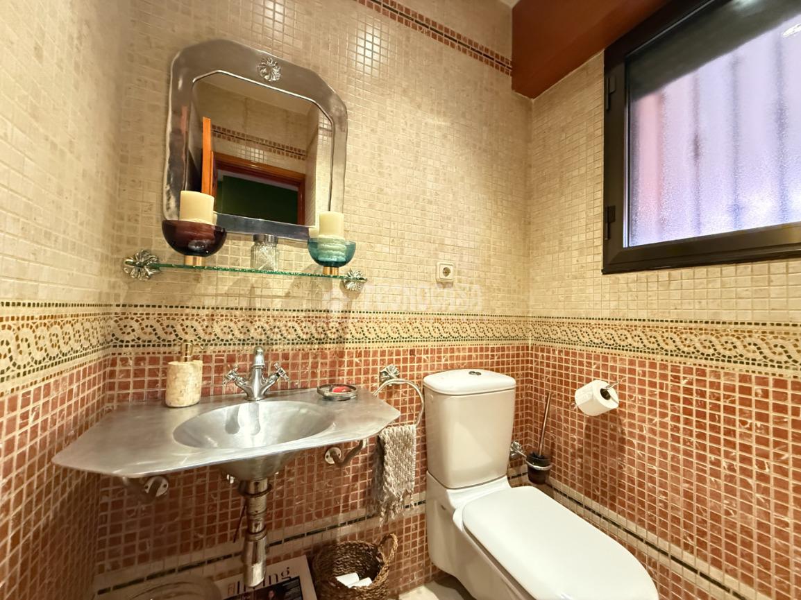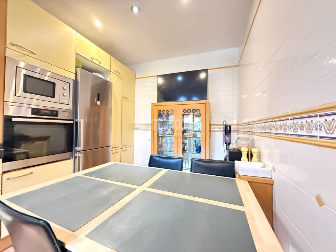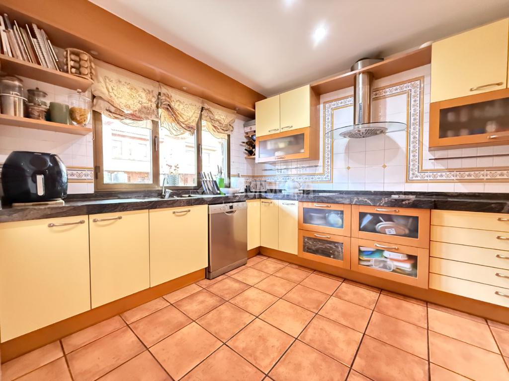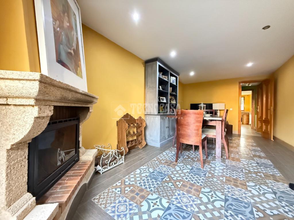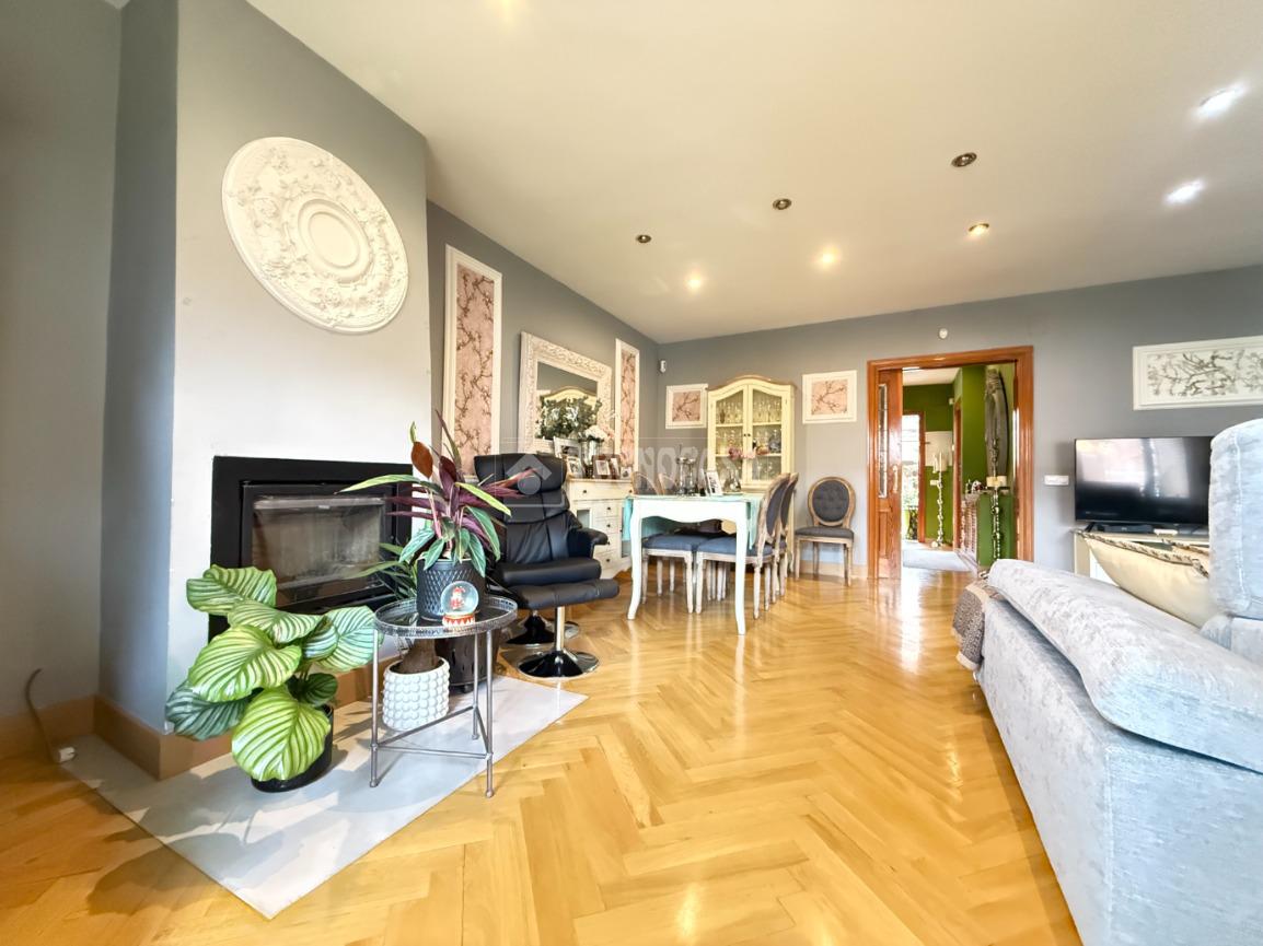 En la primera planta encontramos un amplio y luminoso salón-comedor con chimenea y salida directa a una terraza exterior. Dispone de grandes ventanales que aportan abundante luz natural y favorecen la ventilación en verano. En esta planta se sitúa también una cocina amplia y reformada, con zona de desayunador, un aseo de cortesía y pasillo distribuidor. Los suelos son de parquet, aportando calidez a toda la vivienda.