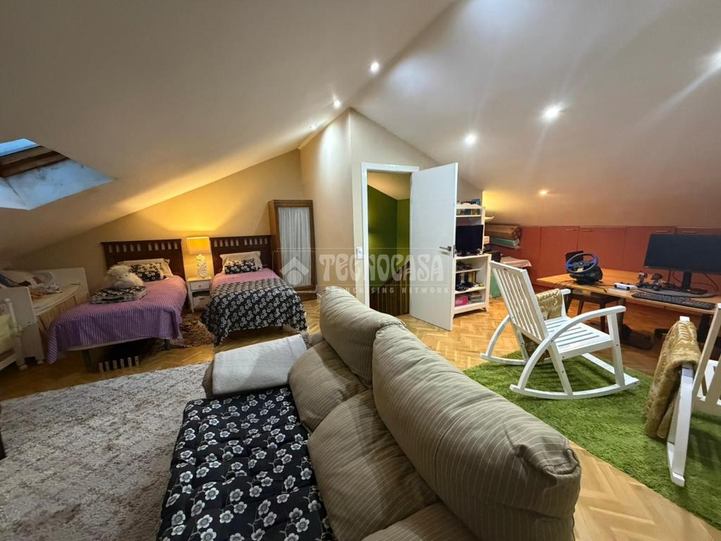 En la buhardilla se dispone de una amplia zona diáfana de uso polivalente, actualmente destinada a área de juegos y descanso, ideal como sala de estar, despacho o zona de ocio.