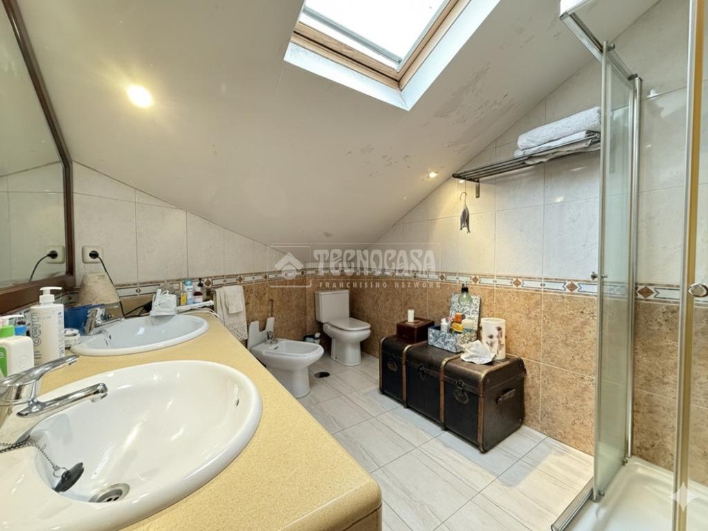 La planta de arriba cuenta con; dormitorio principal con armarios empotrados, dormitorio con armarios empotrados y vestidor y un terecer dormitorio con armarios empotrados, baño completo con lavabo doble y plato de ducha. En el pasillo cuenta también con un armario ropero.