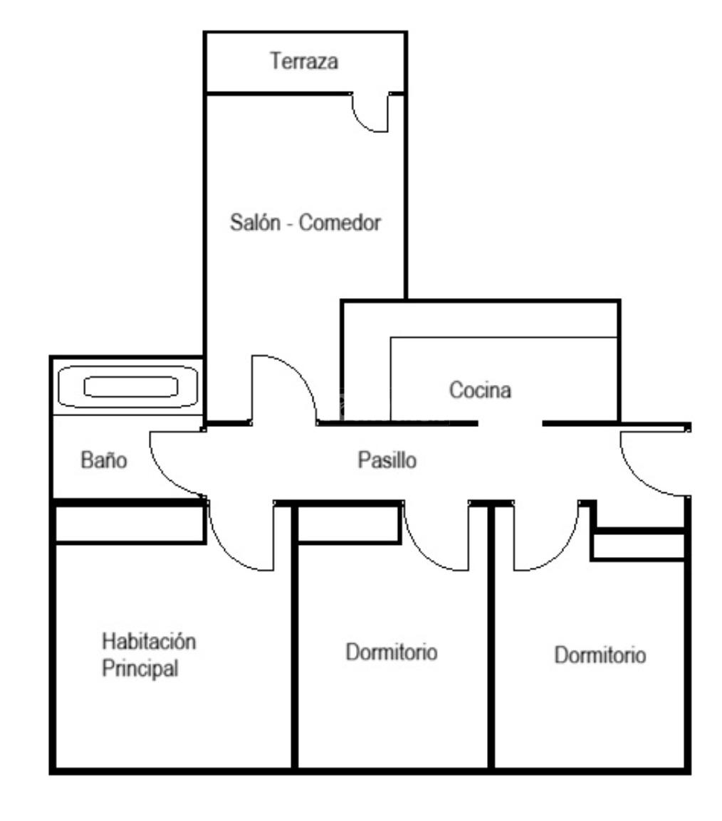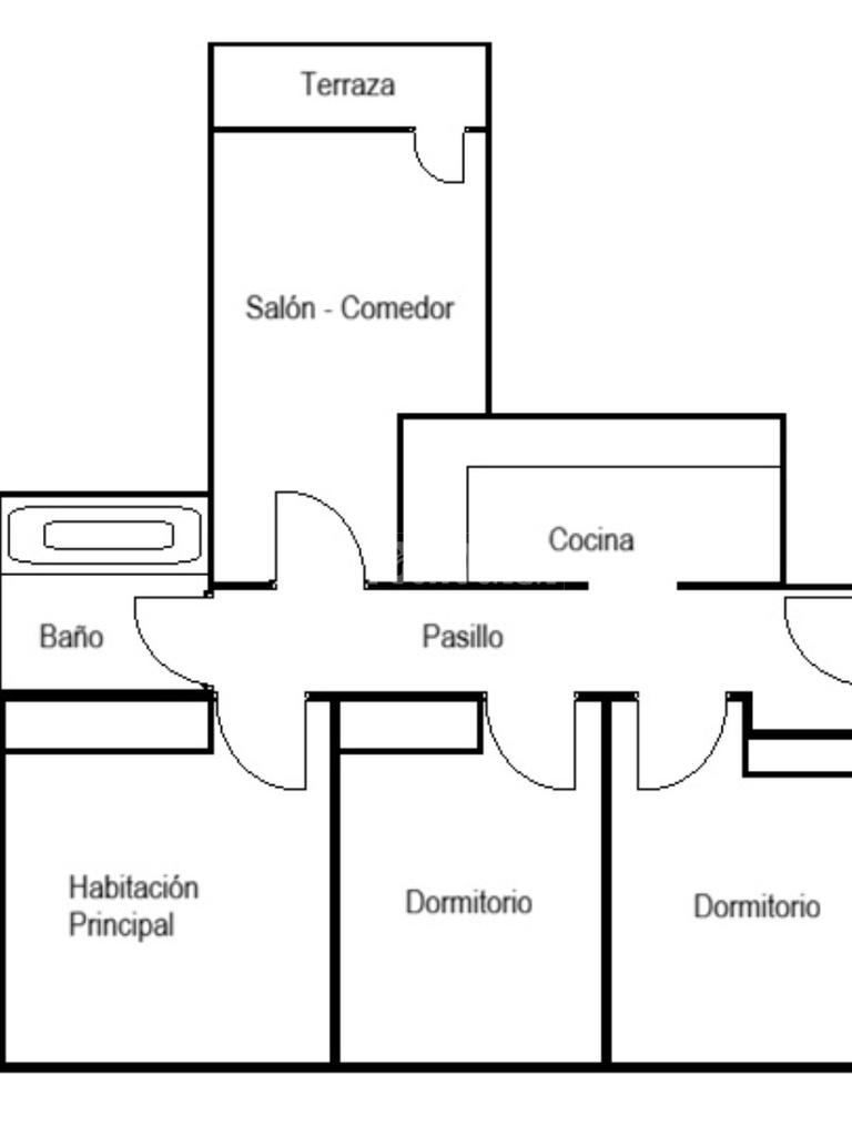 Piso de 3 dormitorios, distribuido de la siguiente manera: Salón-comedor luminoso con salida a terraza, cocina independiente, dormitorio principal luminoso con armarios empotrados, habitación secundaria con armarios empotrados, baño completo con bañera.