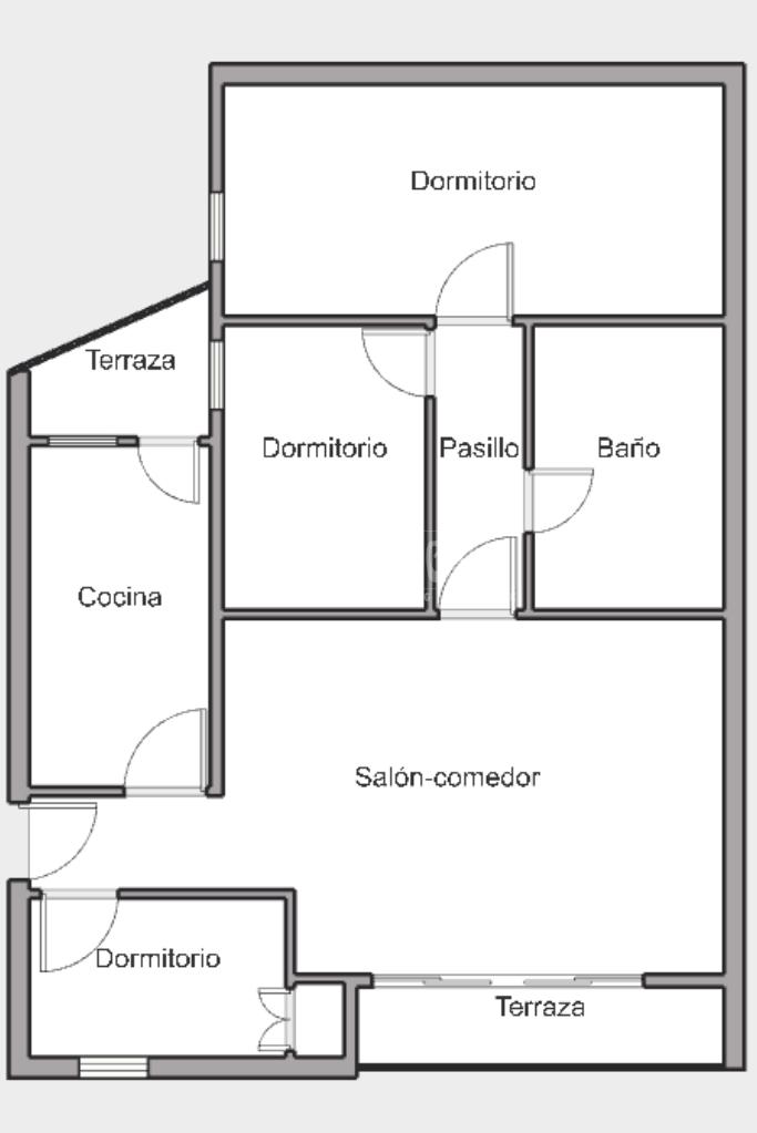Piso de 3 dormitorios, distribuido de la siguiente manera: amplio Salón-comedor luminoso con salida a terraza, cocina independiente con terraza-tendedero, Amplia habitacion principal luminosa y ademas cuenta con armarios empotrados, la habitación secundaria tambien es luminosa con armarios empotrados y otro dormitorio luminoso con ventana, el baño es completo y cuenta con bañera. La vivienda cuenta con plaza de garaje comunitaria asignada.